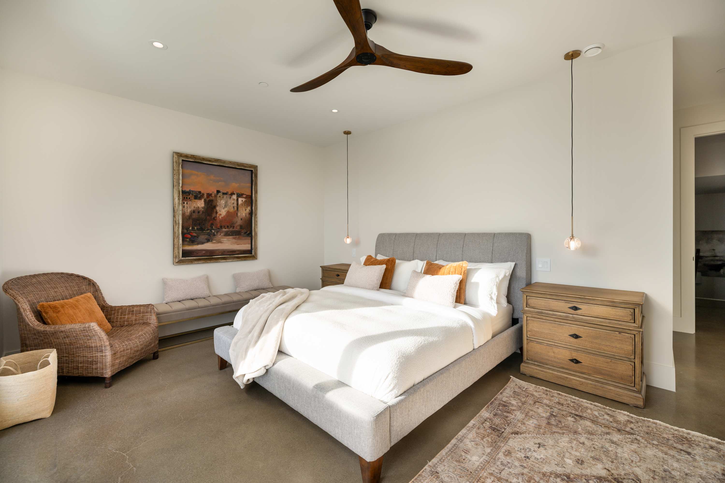 - Comfort & Convenience: Floor heating throughout, humidifiers, ceiling fans, dedicated workspace, and premium bed linens