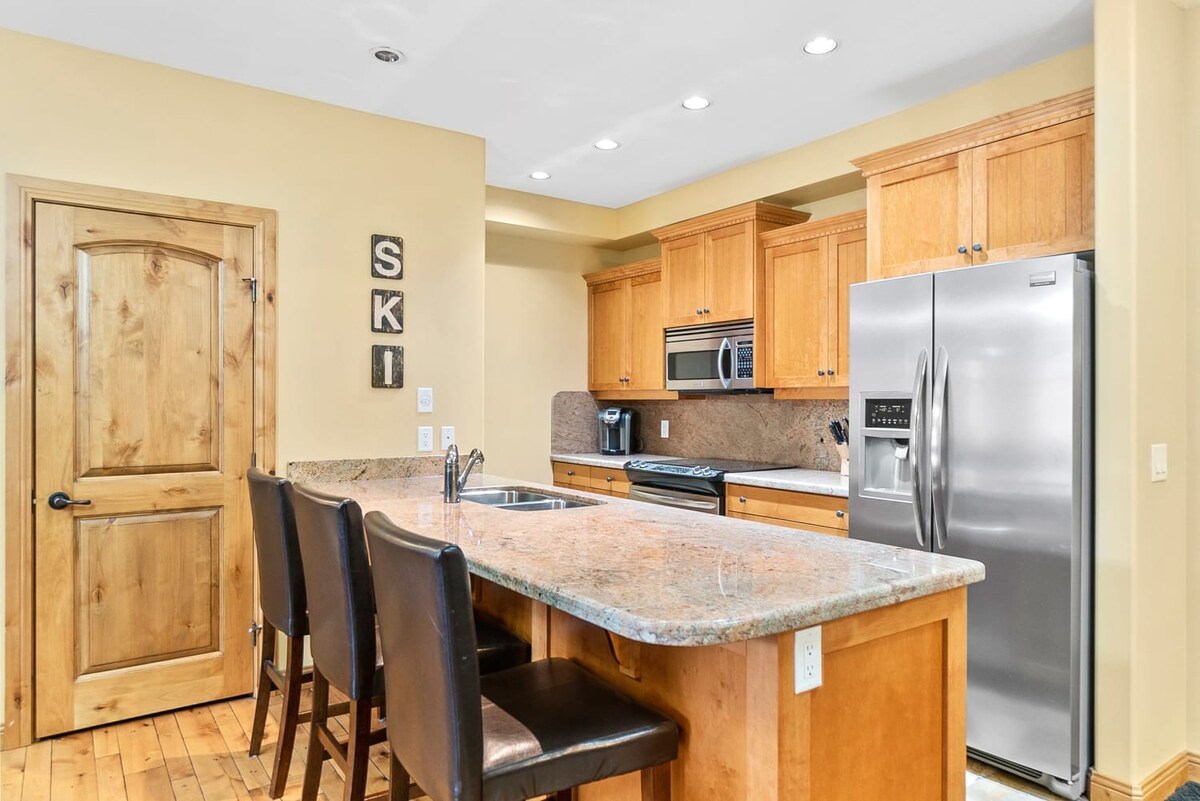 This luxurious ski-in/ski-out 2 bedroom, 2 bath chalet that comfortably sleeps 8 guests is everything you need for the ski trip you’ve been looking for.