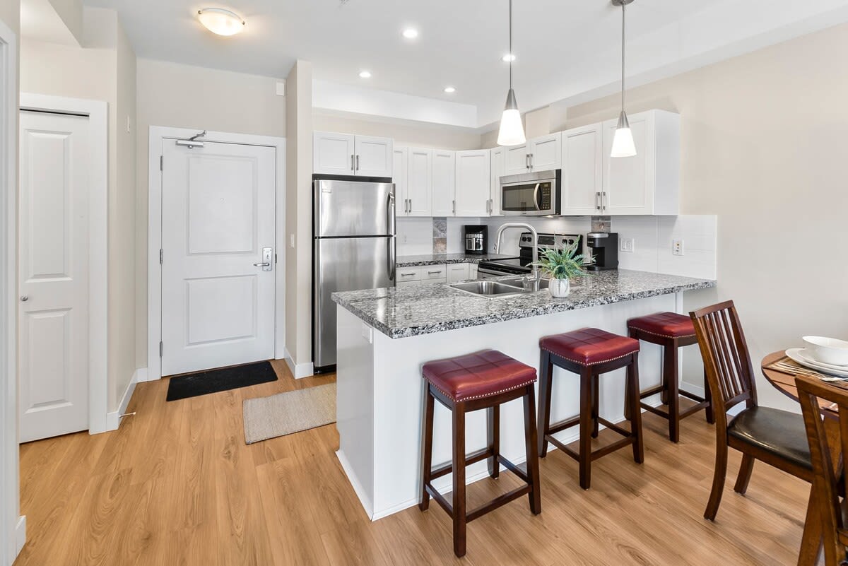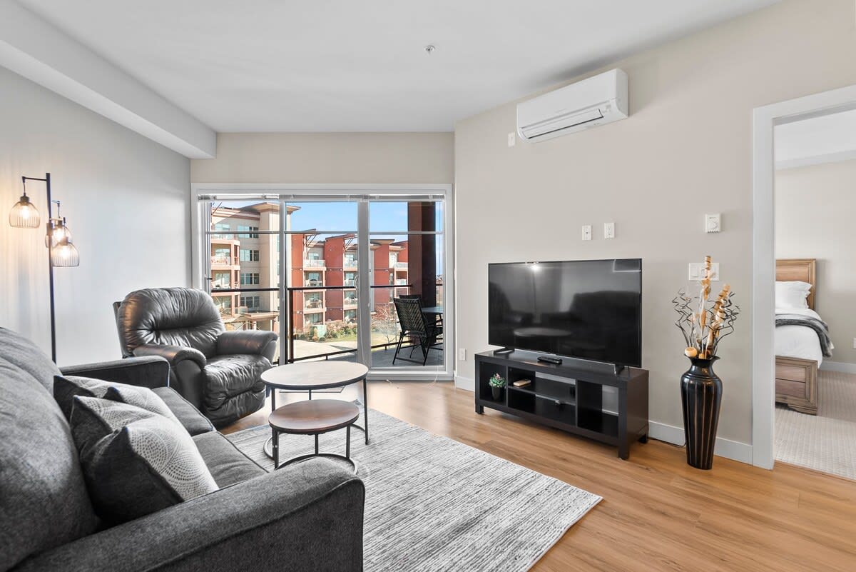 Welcome to The Hilltop Enjoy your getaway at this updated lake view condo located in the hills of West Kelowna. Facing Mt. Boucherie, the bell tower at Mission Hill Winery, and the lakefront of West Kelowna. Come for business or fun. Stay for panoramic views from your private balcony and a five-million-dollar amenities complex with multiple pools, a fitness center, outdoor hot tub, sauna, and more.
